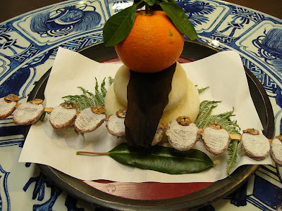 i’m sure you’re still enjoying the holiday season. so are we japanese. we got out of our christmas fantasy completely, though. we japanese don’t mix our new year celebration with christmas. so you can see no christmas trees anyplace in japan now. our 新年shinnen (new year) has got to be traditional, authentic and 100% japanese. once chrismas day (or even christmas eve!) is gone, in my country, people get busy with preparations for the new year celebration, sweating our guts out. how and why, you'd ask? we, at home and also in our offices, dust and clean every nook and cranny -- even statues of buddha and gutters before 正月shogatsu (the new year).
